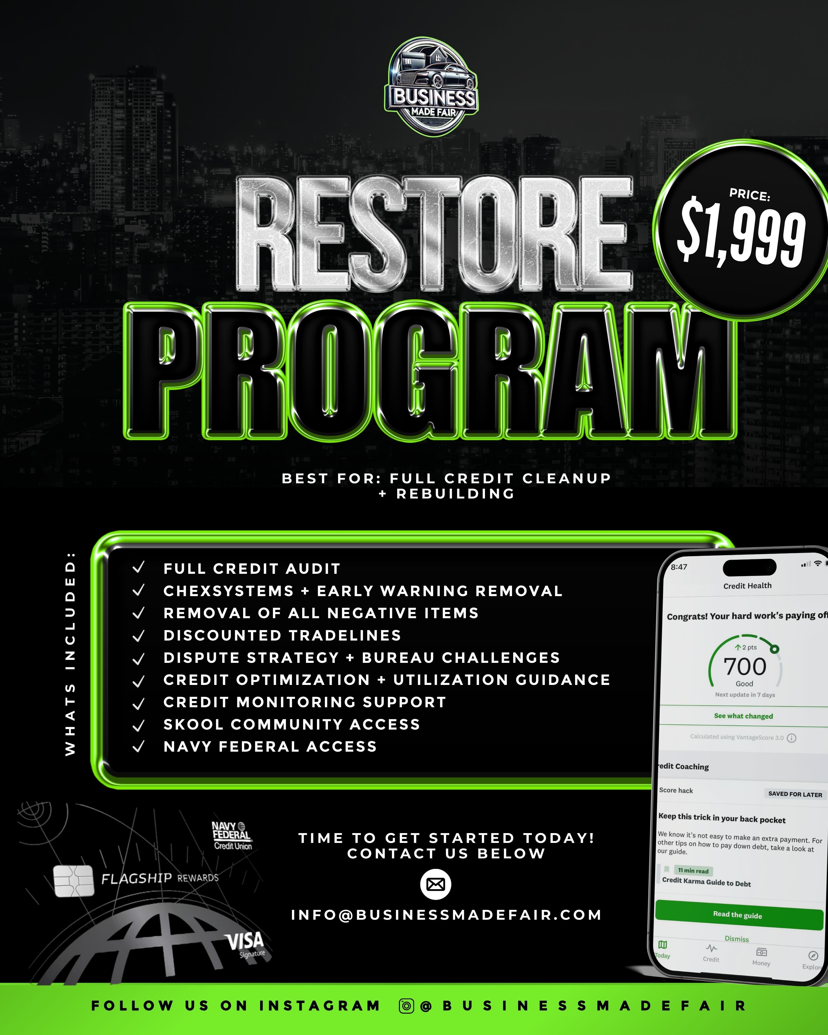 Transform your financial future with expert credit solutions, business credit building, and personalized coaching services designed to unlock oppurtunities and create lasting wealth.
