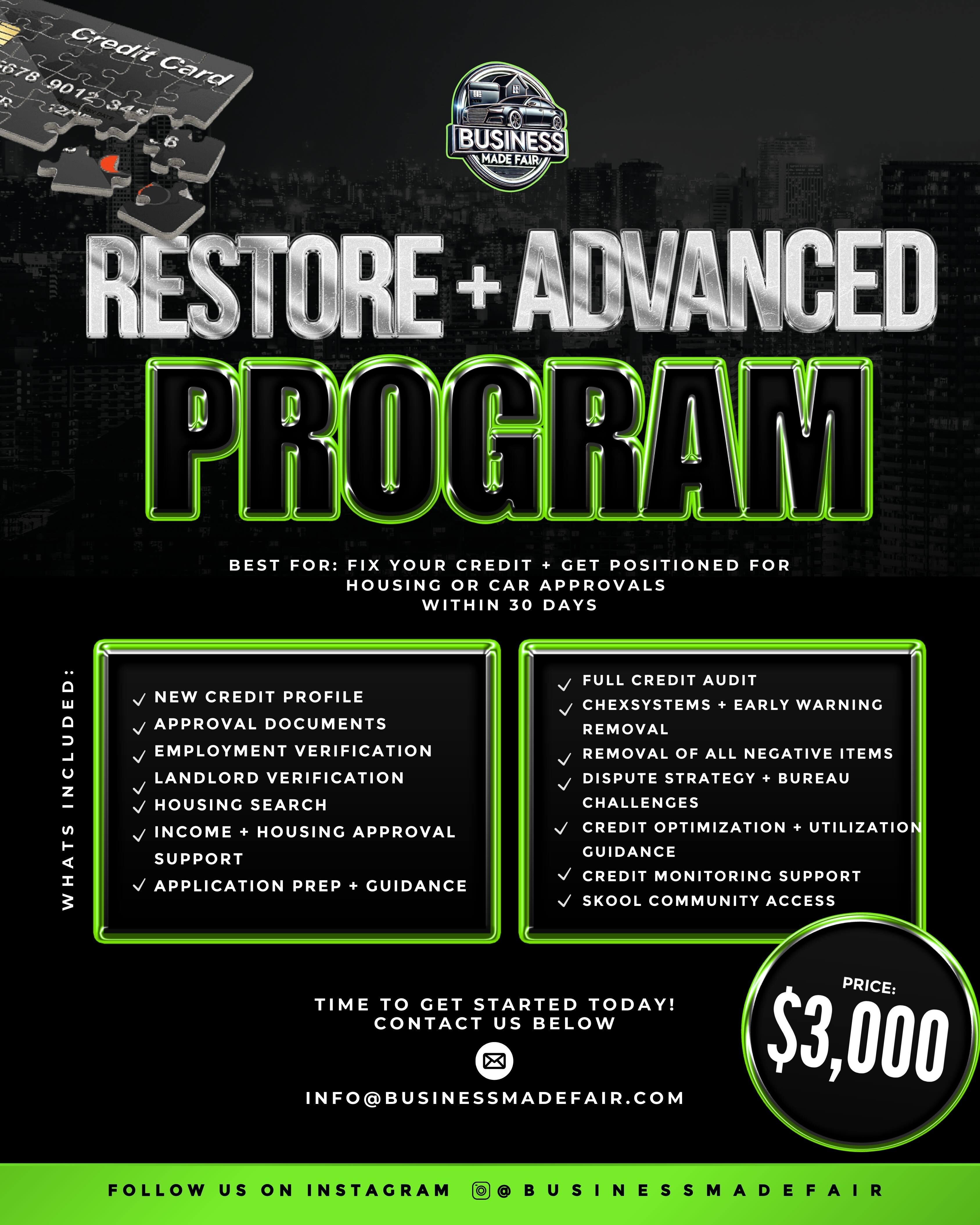 Disclaimer: Business Made Fair is not a law firm and does not provide legal advice. Results may vary and are not guaranteed. Credit repair results and timeframes will vary based on individual circumstances. We cannot remove accurate negative items from your credit report. Past performance does not guarantee future results.